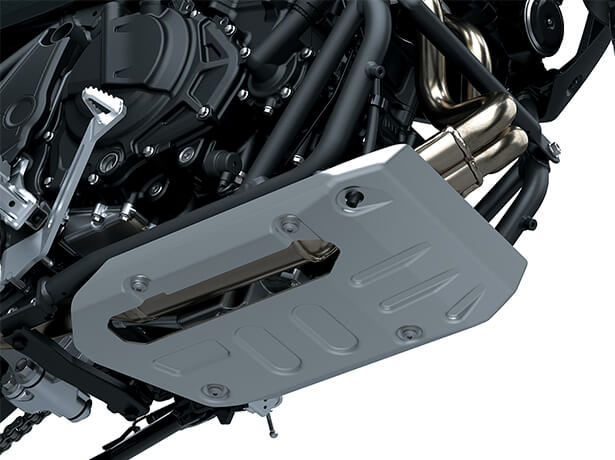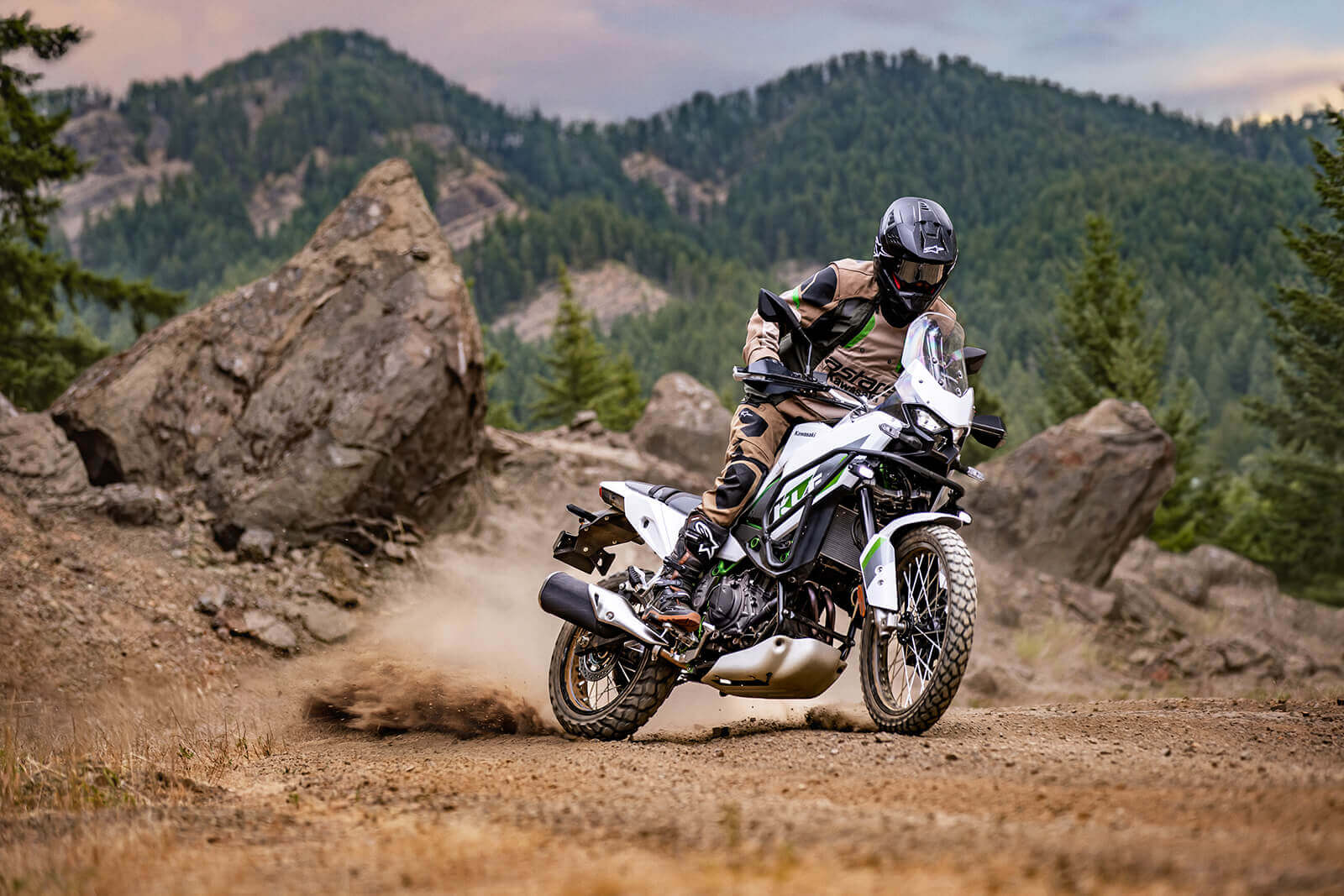 Street-bike elements such as the stepped seat, low-mounted front fender, and headlight design reflecting Kawasaki’s family identity add familiarity. The compact triple LED headlight combines street-sport character with rally inspiration while delivering excellent lighting performance. Slim side covers, a compact fuel tank, and KX-inspired design lines give the bike a light, agile appearance that supports rider mobility and control.