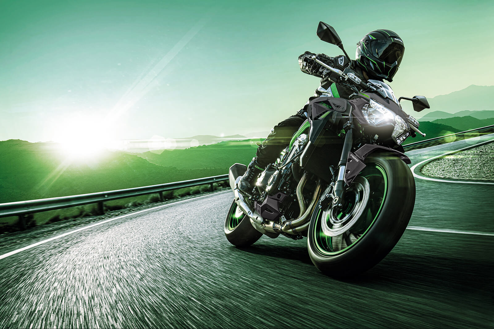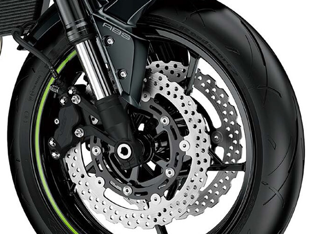New Dunlop Sportmax Roadsport 2 tyres contribute to the Z900’s superb handling character.